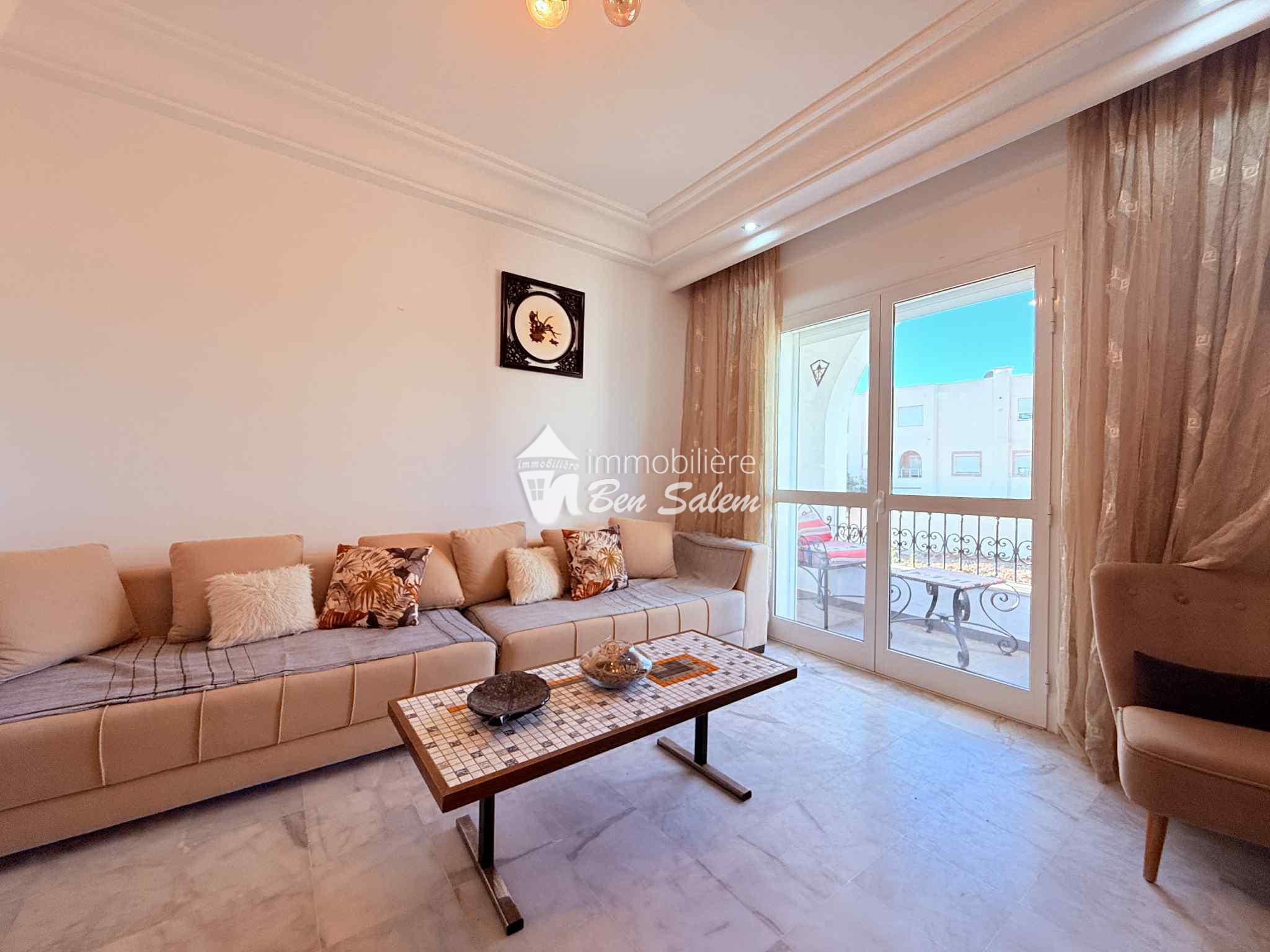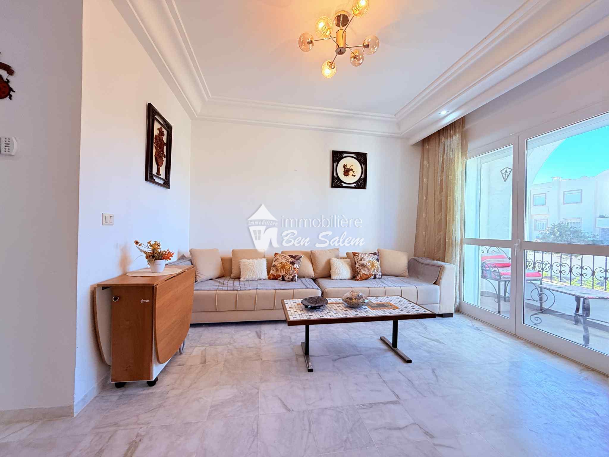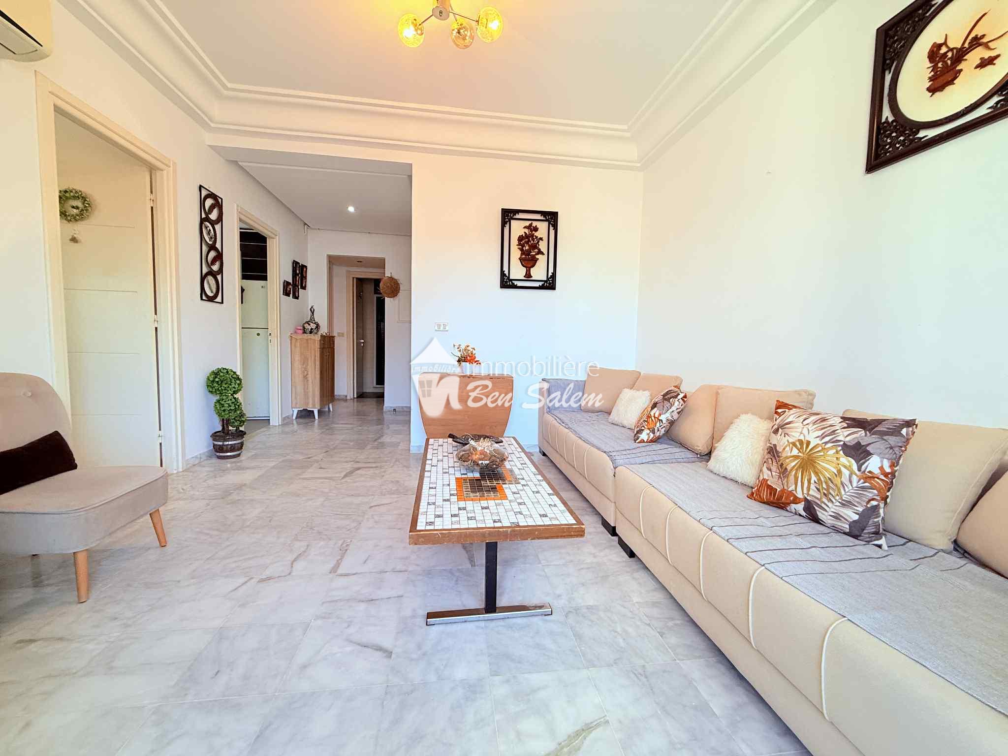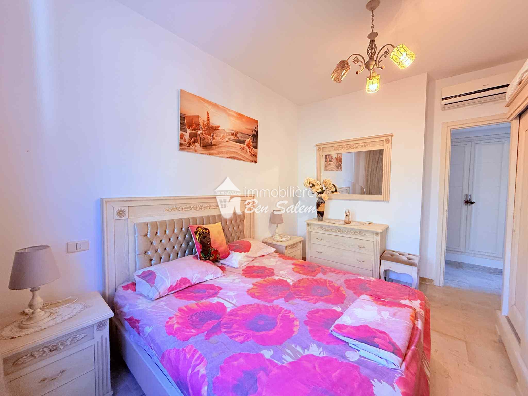 A vendre, un bel appartement situé au 2 ème étage d’une résidence paisible et surveillée au cœur de la zone touristique Hammamet Nord proche de tous commerces (hôtels (Hôtel El Fell, Nahrawess..), restaurants, bars, plages (300 m), club, aquaparc, commerces).