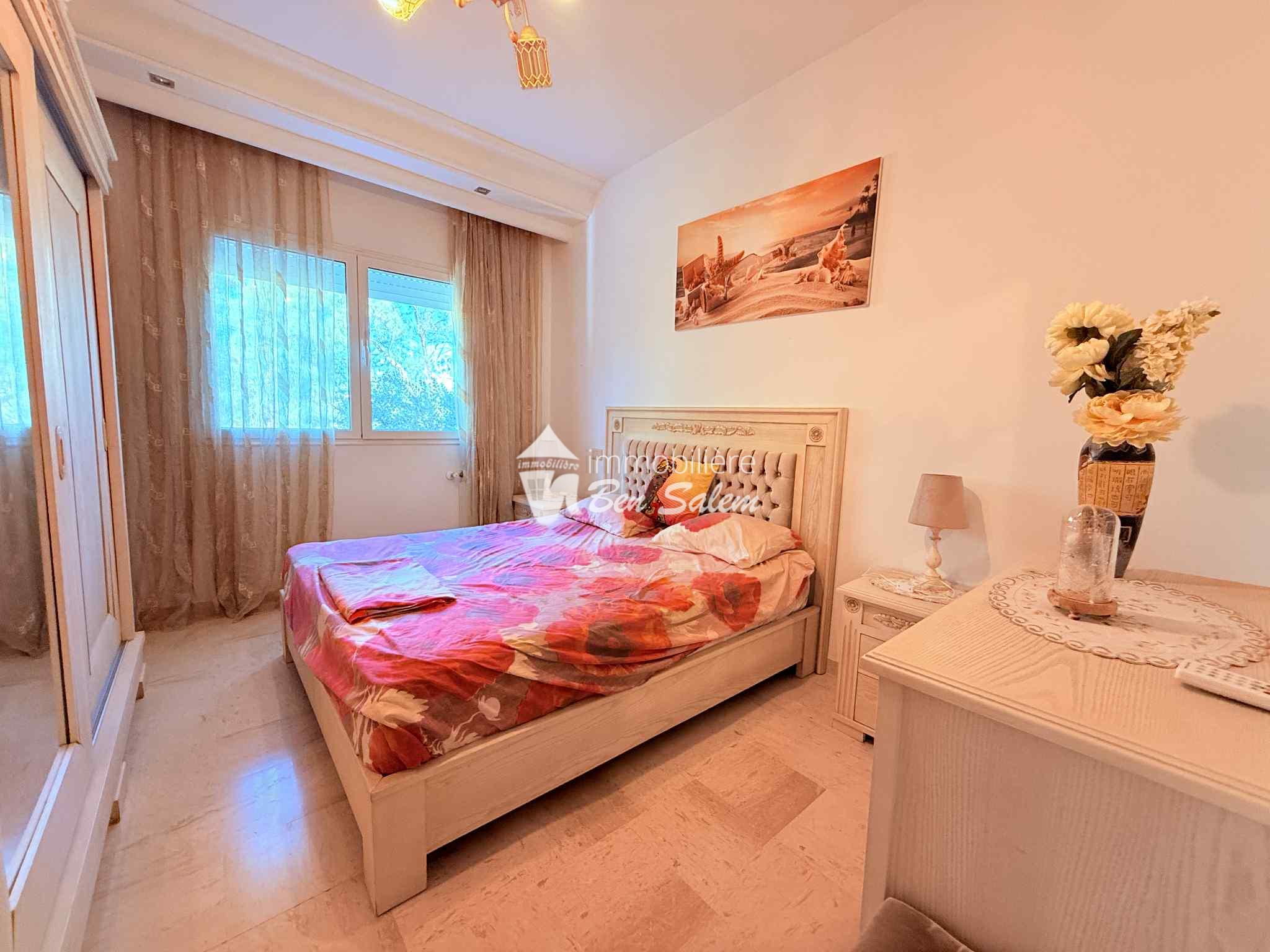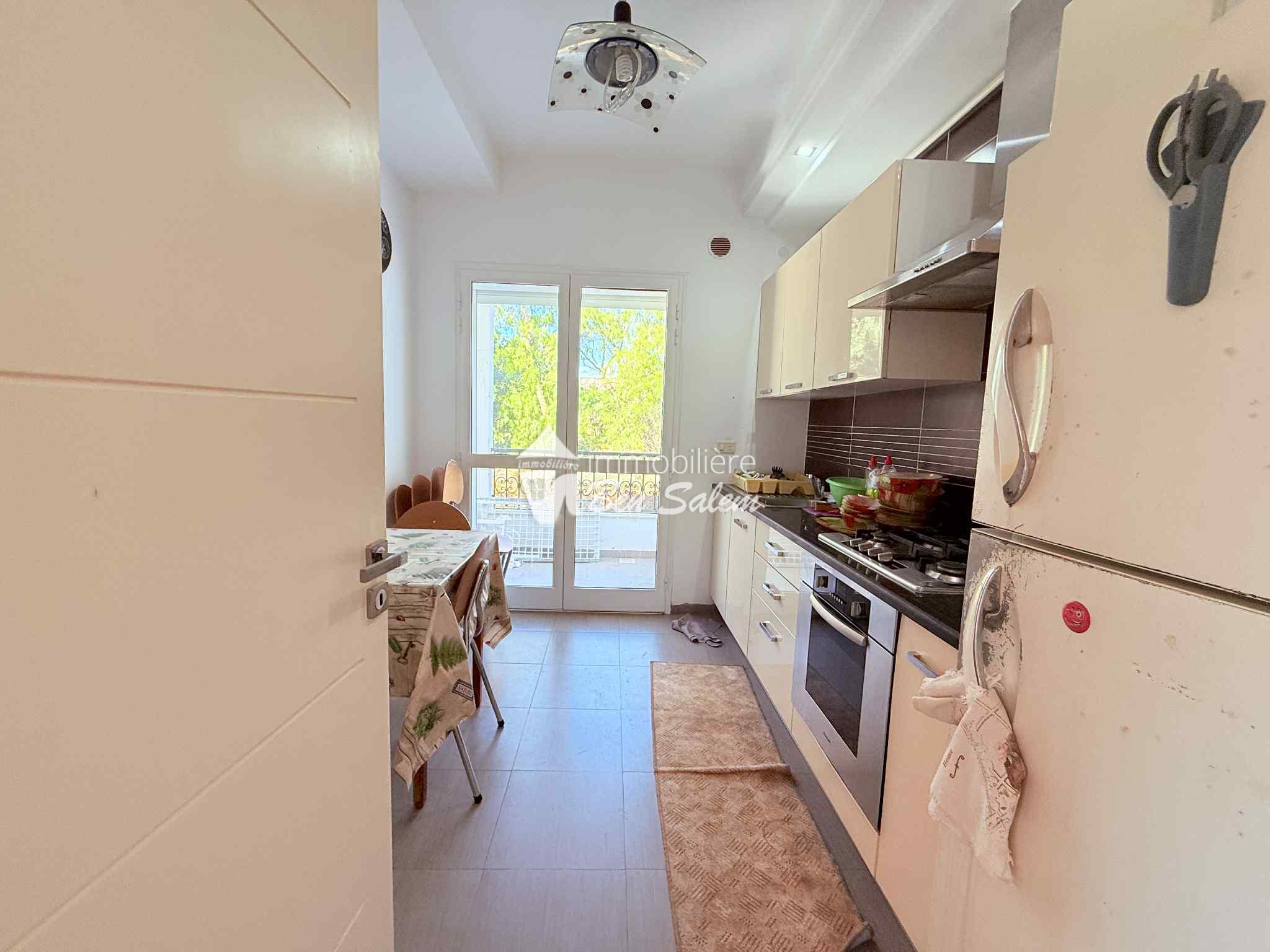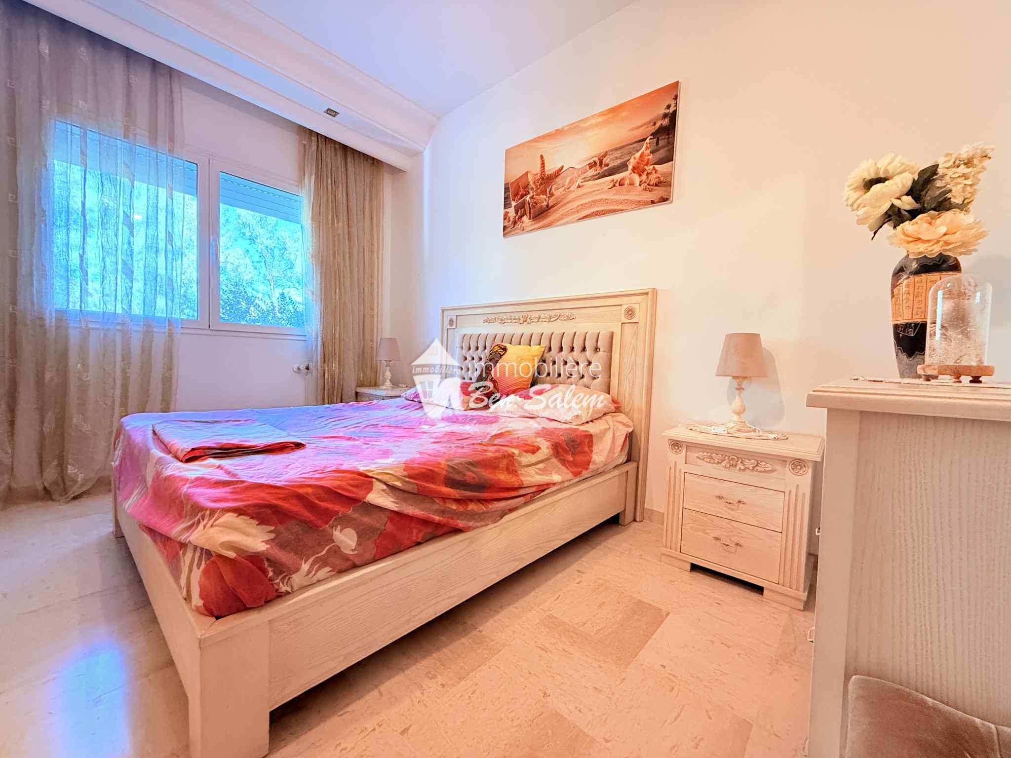 A vendre, un bel appartement situé au 2 ème étage d’une résidence paisible et surveillée au cœur de la zone touristique Hammamet Nord proche de tous commerces (hôtels (Hôtel El Fell, Nahrawess..), restaurants, bars, plages (300 m), club, aquaparc, commerces).