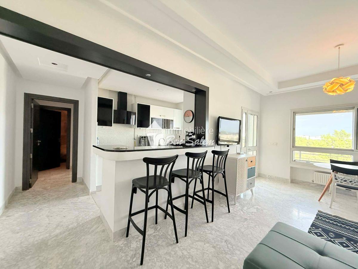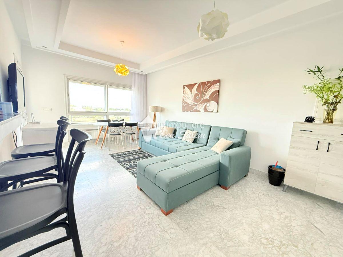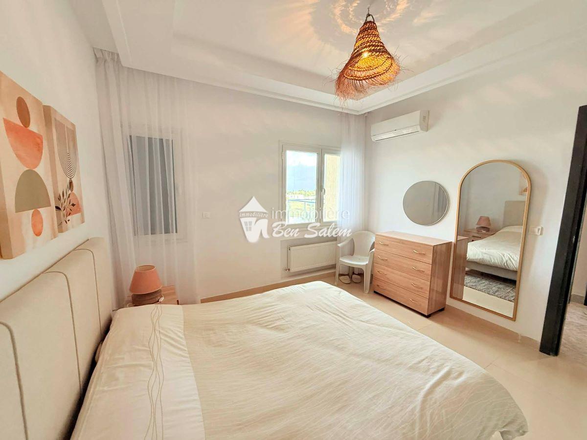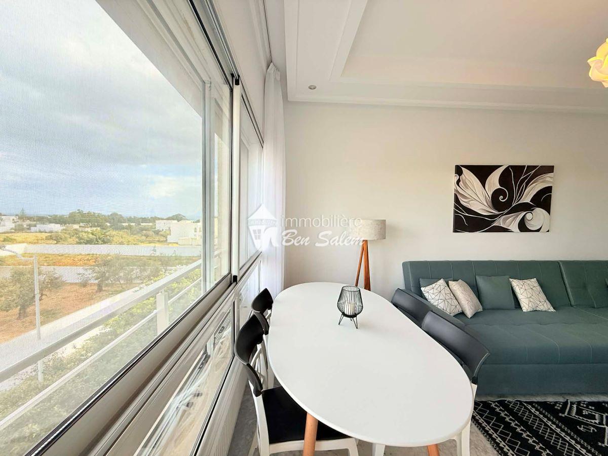 A louer pour les vacances, un bel appartement avec vue de mer agréable, situé au 2 eme étage, dans une résidence gardée et sécurisée très proche de la mer à Hammamet Nord zone Hôtel sultan et badira, proche de toutes commodités et loisirs, et 5 mn du centre ville.