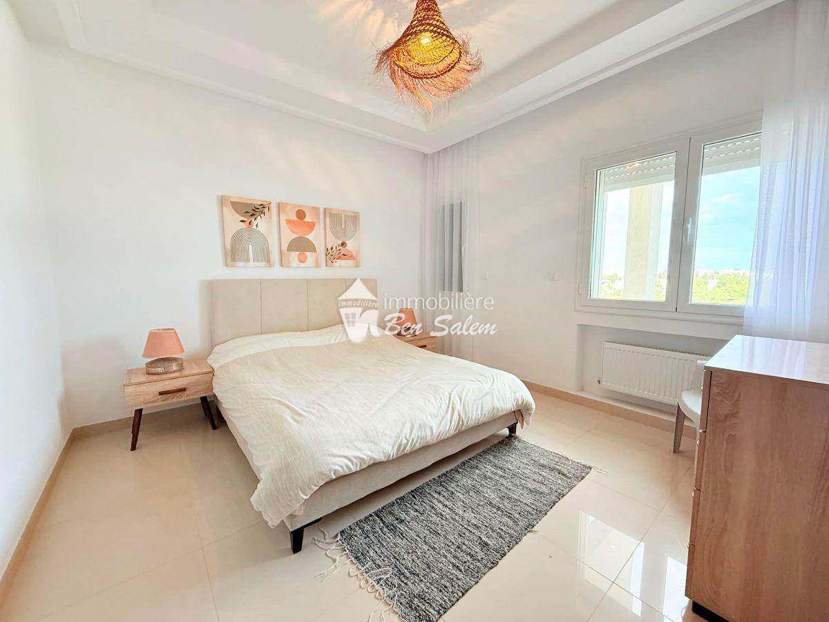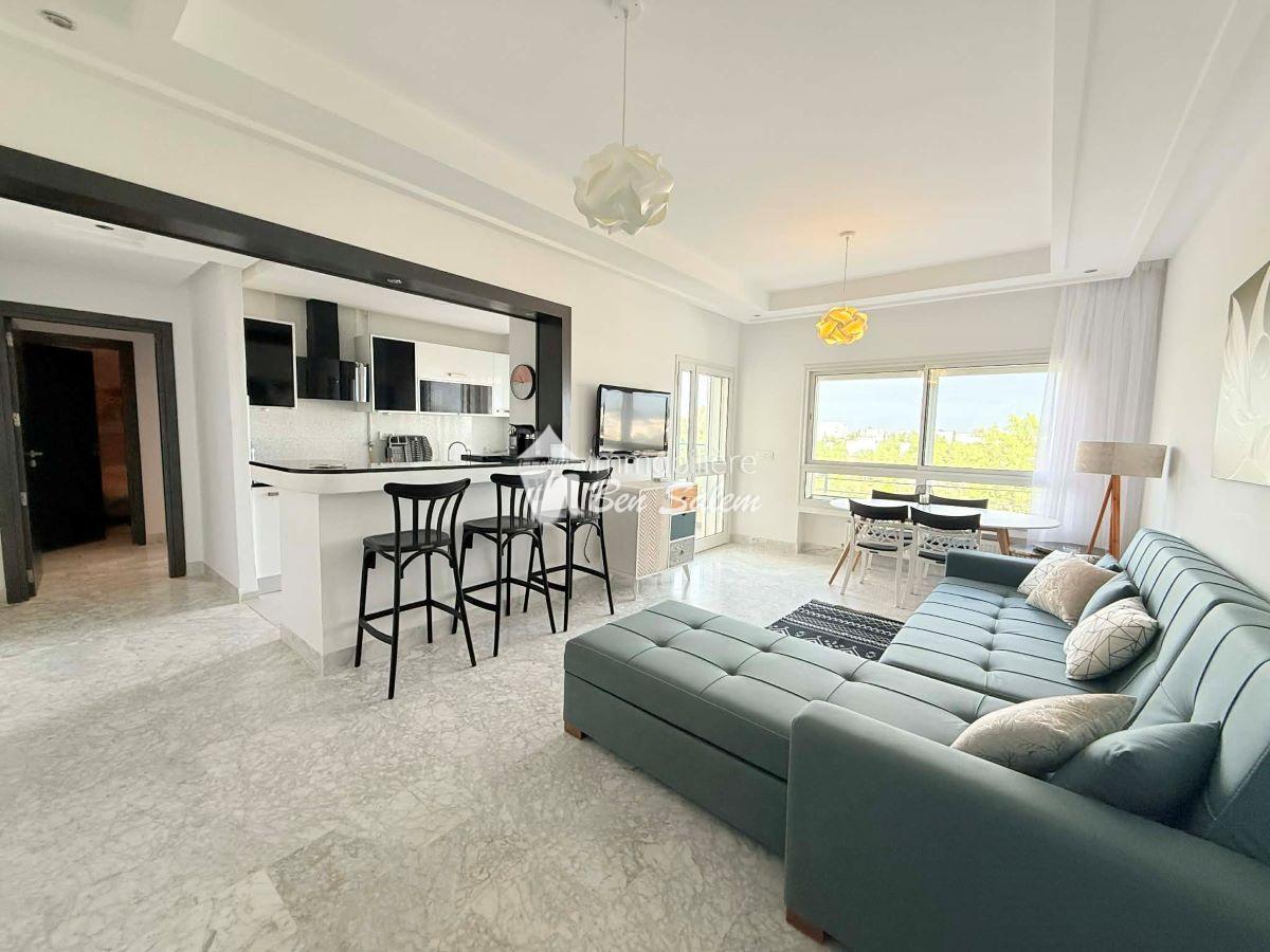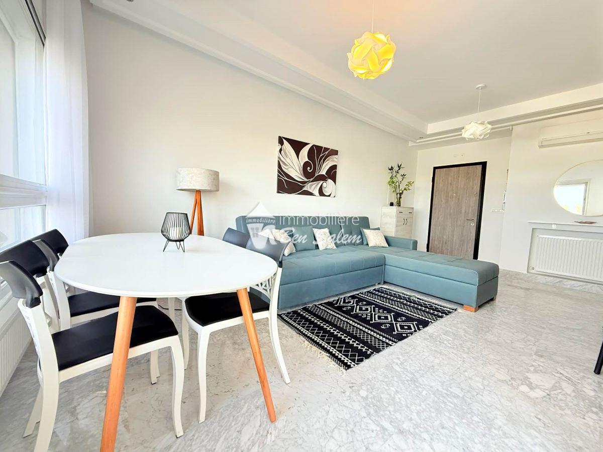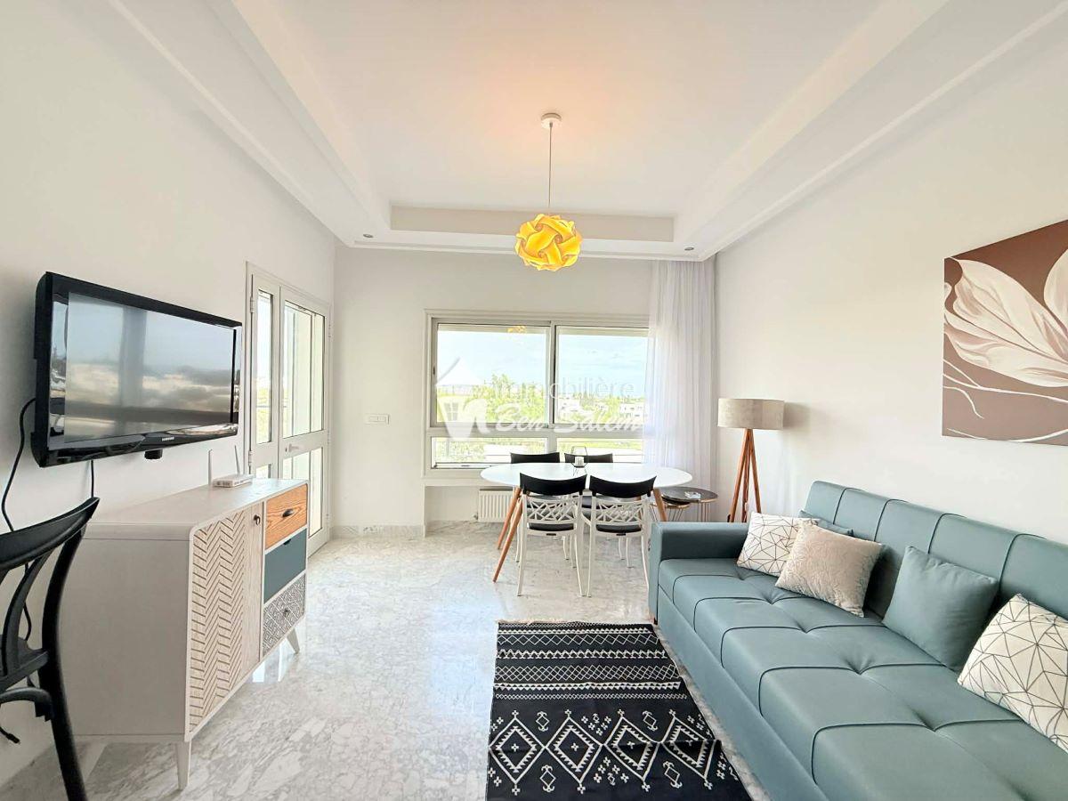 A louer pour les vacances, un bel appartement avec vue de mer agréable, situé au 2 eme étage, dans une résidence gardée et sécurisée très proche de la mer à Hammamet Nord zone Hôtel sultan et badira, proche de toutes commodités et loisirs, et 5 mn du centre ville.