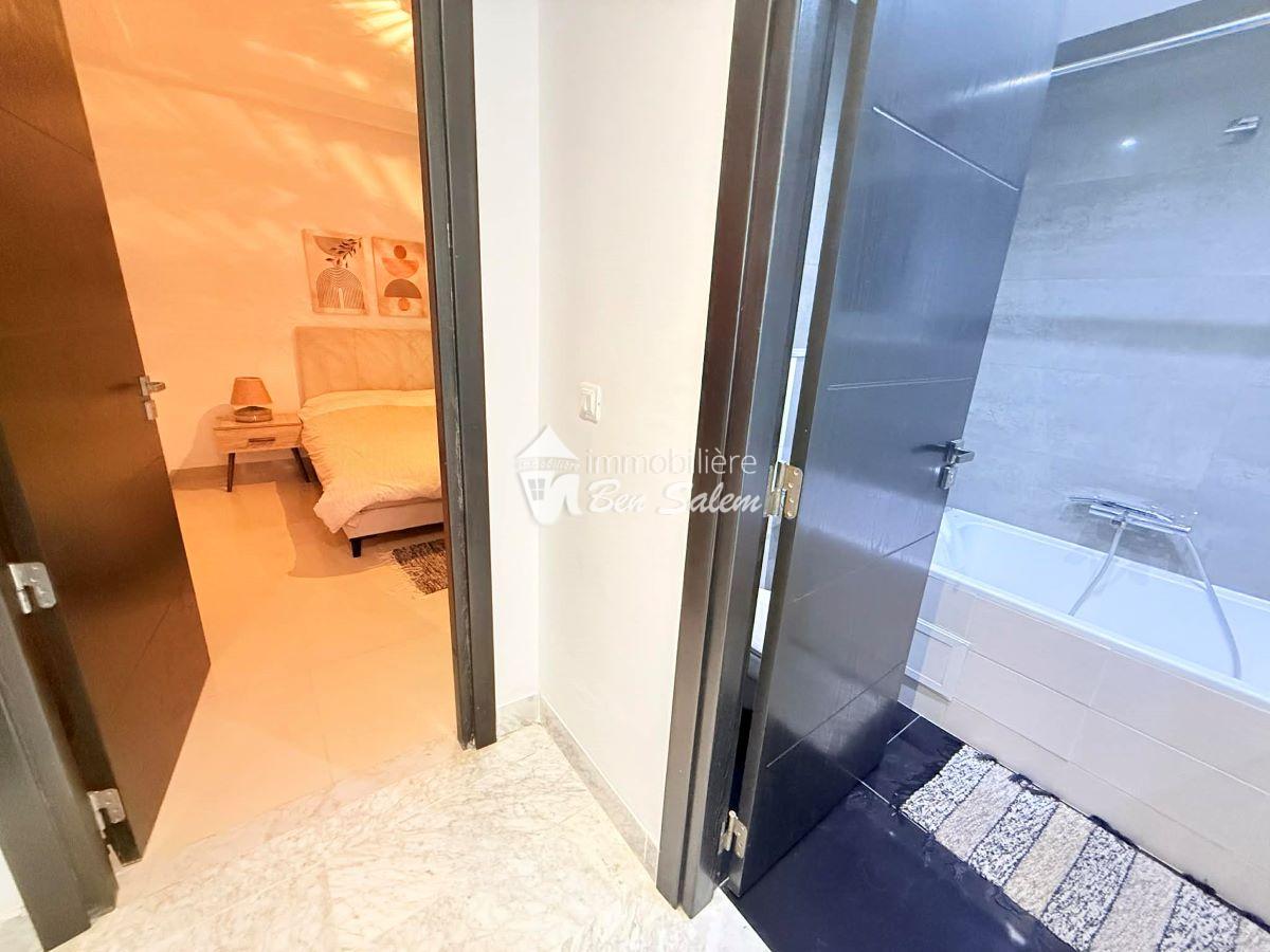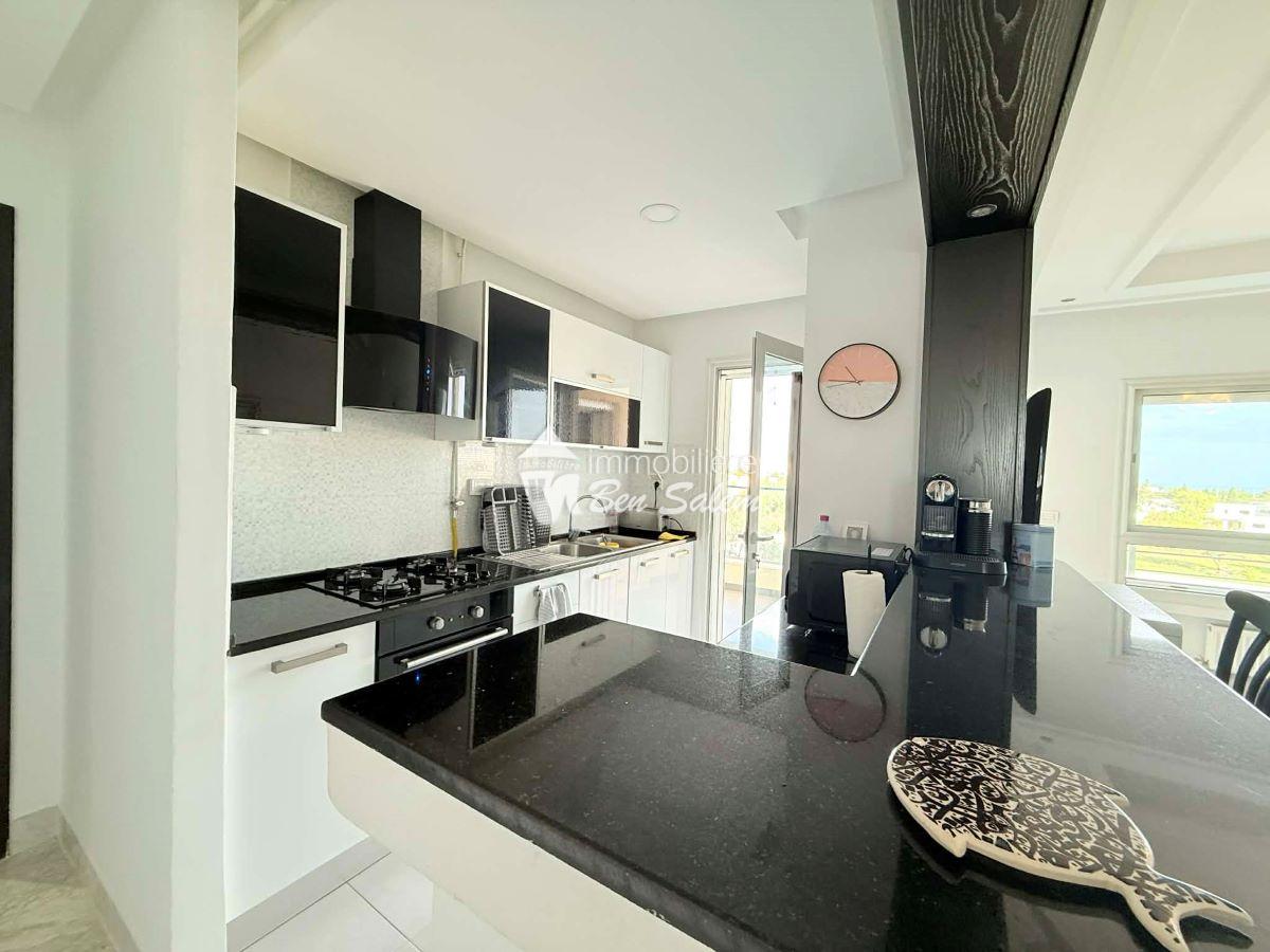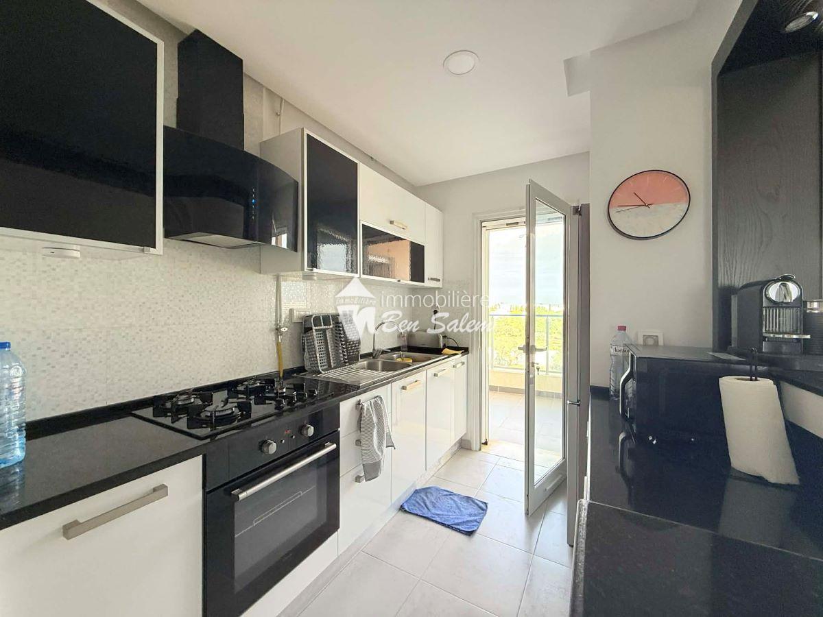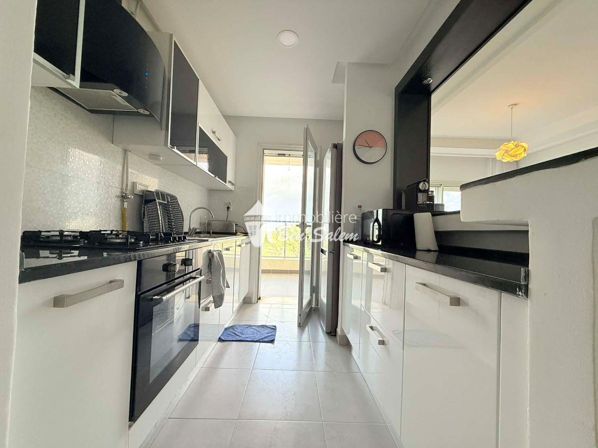 A louer pour les vacances, un bel appartement avec vue de mer agréable, situé au 2 eme étage, dans une résidence gardée et sécurisée très proche de la mer à Hammamet Nord zone Hôtel sultan et badira, proche de toutes commodités et loisirs, et 5 mn du centre ville.