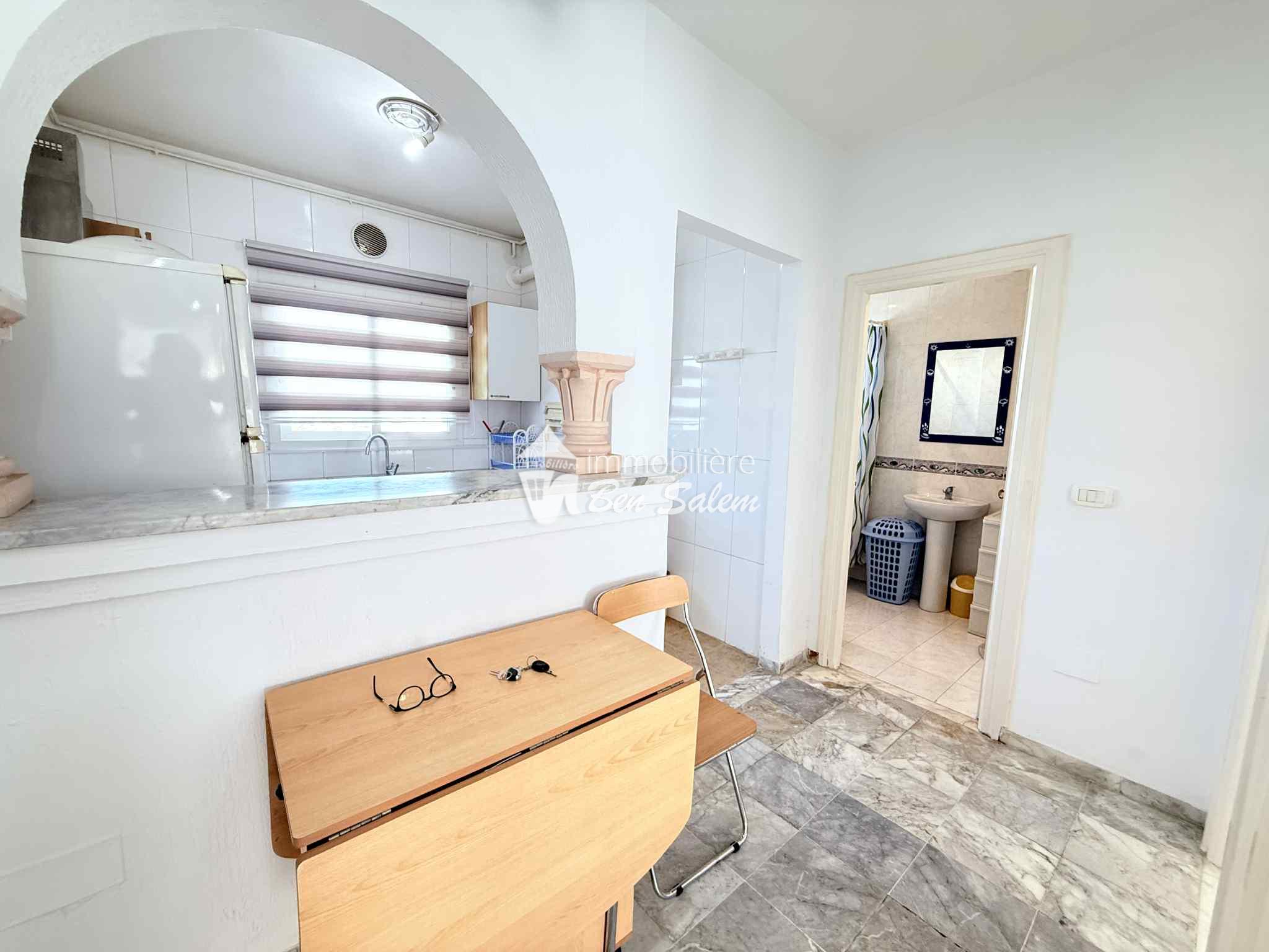 Le hall d’entrée donne sur un salon lumineux qui donne sur une terrasse. La cuisine est ouverte sur le salon, elle est aménagée et équipée. La partie nuit abrite une chambre à coucher ainsi qu’une salle de bain.