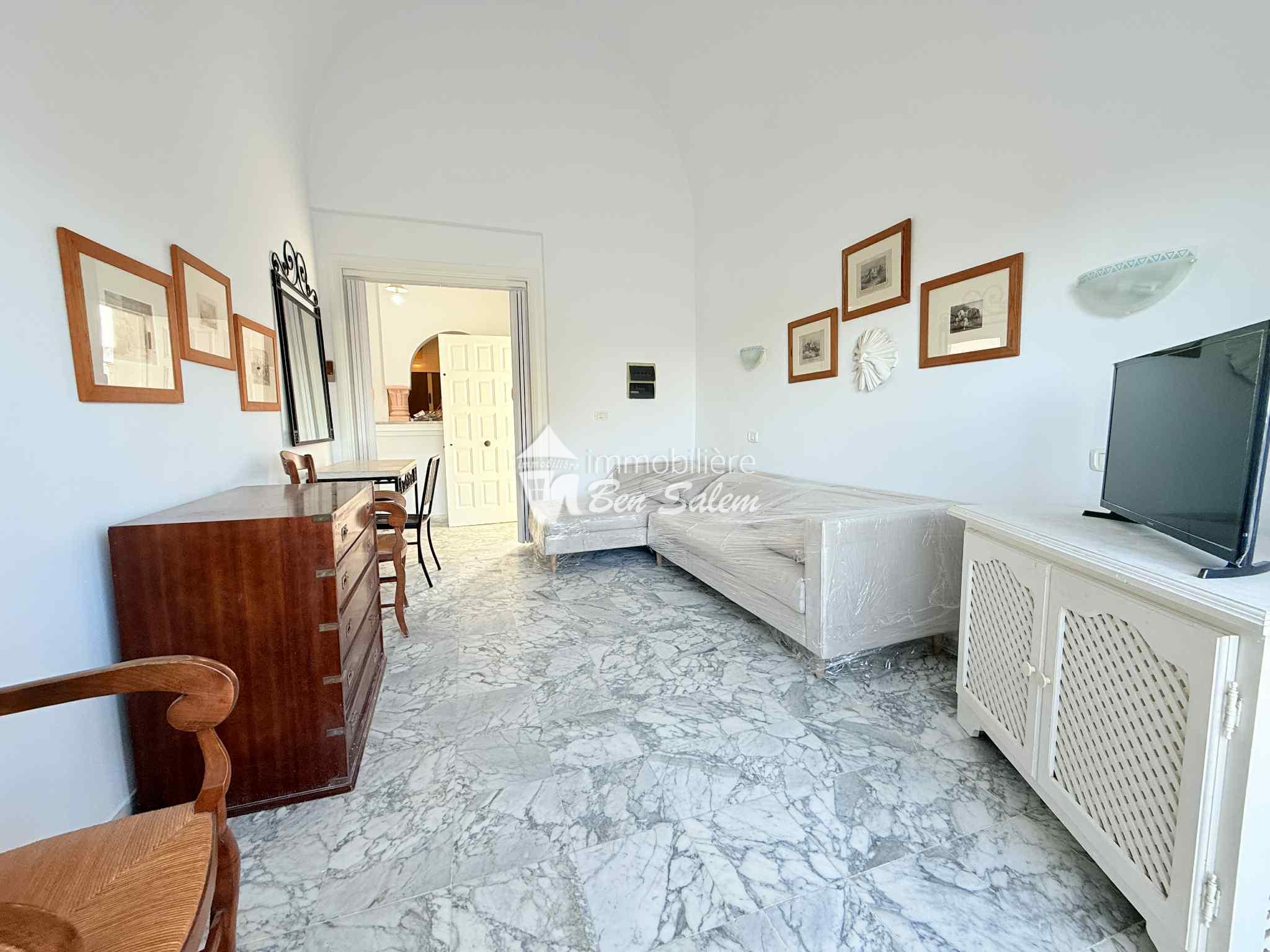Le hall d’entrée donne sur un salon lumineux qui donne sur une terrasse avec vue de mer. La cuisine est ouverte sur le salon, elle est aménagée et équipée. La partie nuit abrite une chambre à coucher avec vue de mer ainsi qu’une salle de bain.