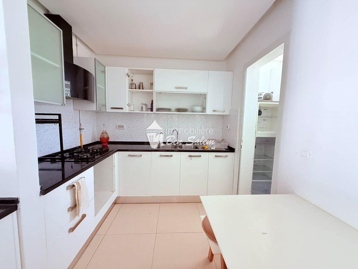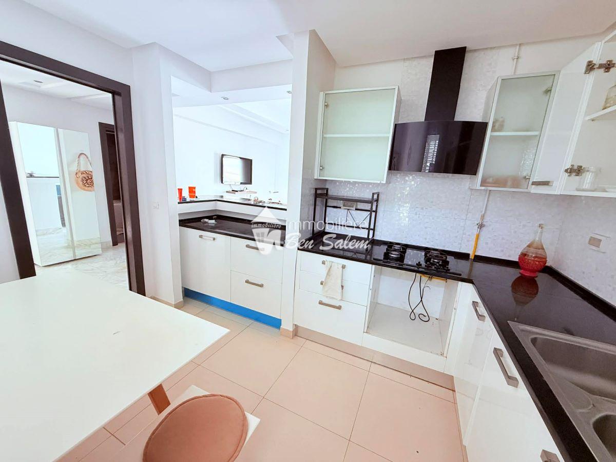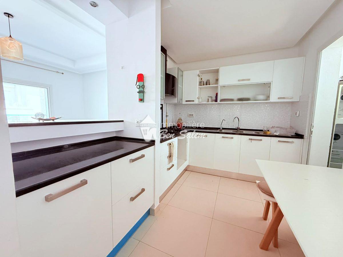 A vendre un bel appartement avec vue de mer agréable, situé au 2 eme étage, dans une résidence gardée et sécurisée très proche de la mer à Hammamet Nord zone Hôtel sultan et badira, proche de toutes commodités et loisirs, et 5 mn du centre ville.