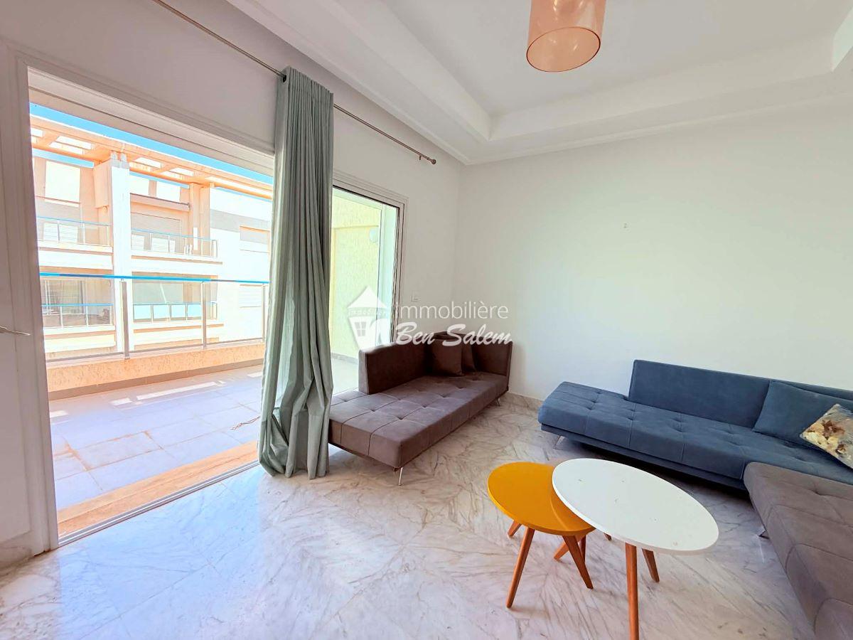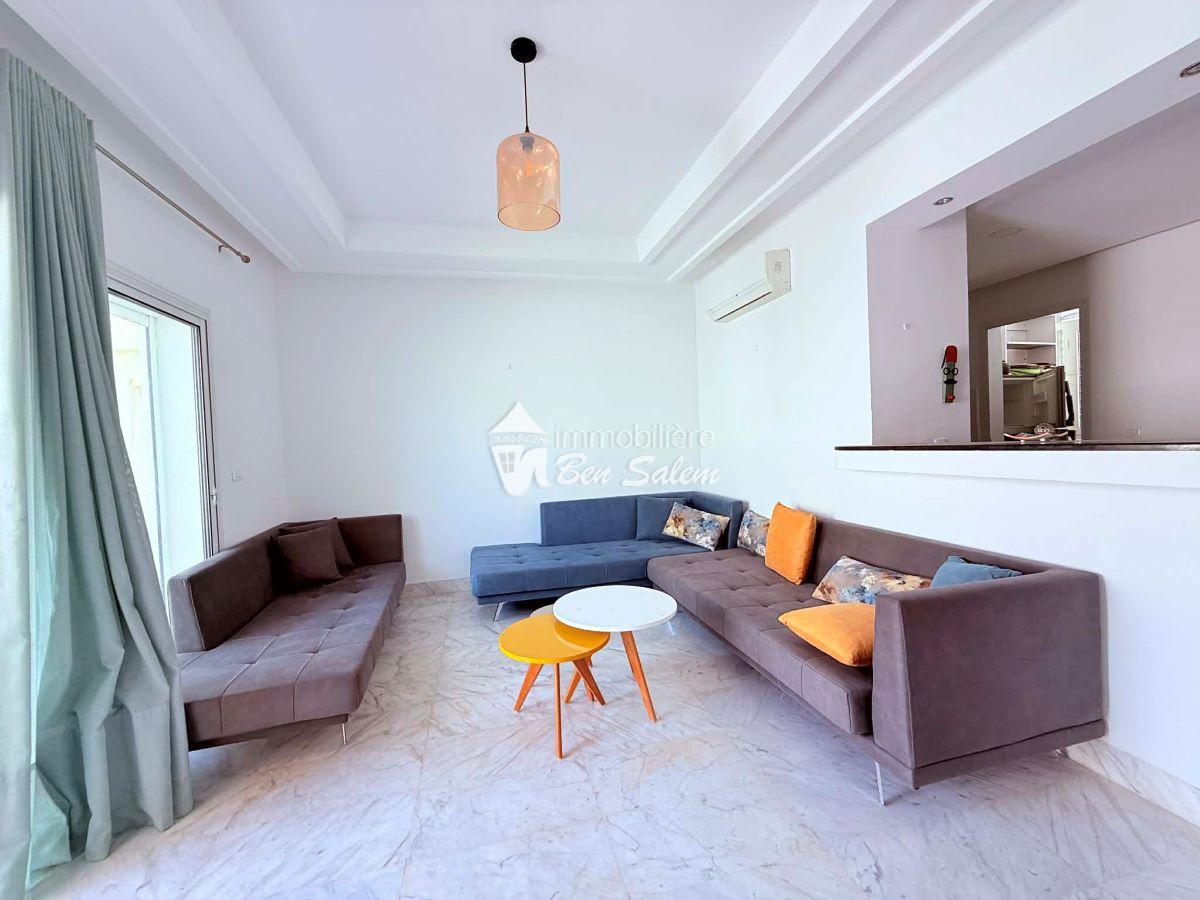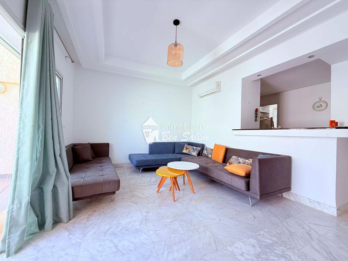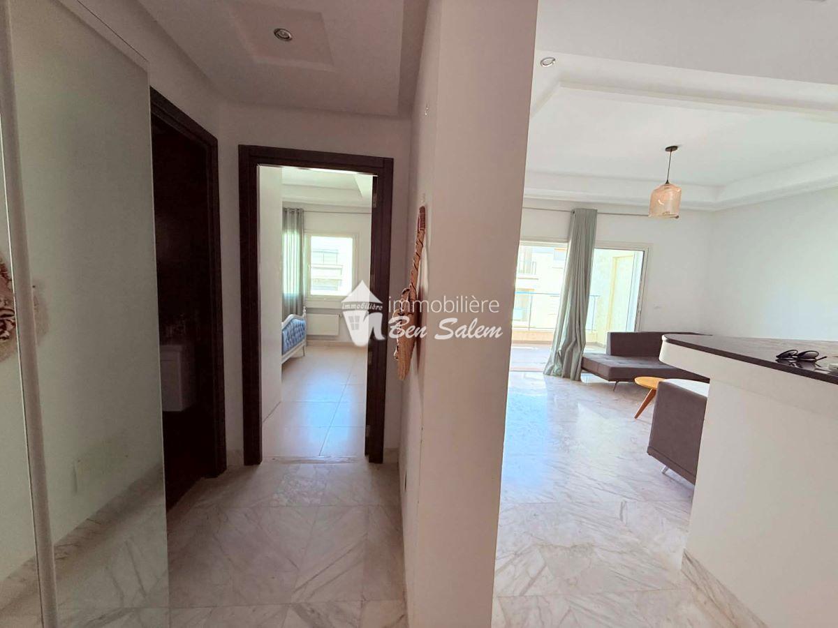 A vendre un bel appartement avec vue de mer agréable, situé au 2 eme étage, dans une résidence gardée et sécurisée très proche de la mer à Hammamet Nord zone Hôtel sultan et badira, proche de toutes commodités et loisirs, et 5 mn du centre ville.