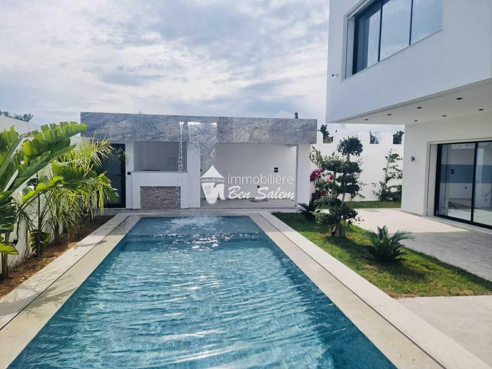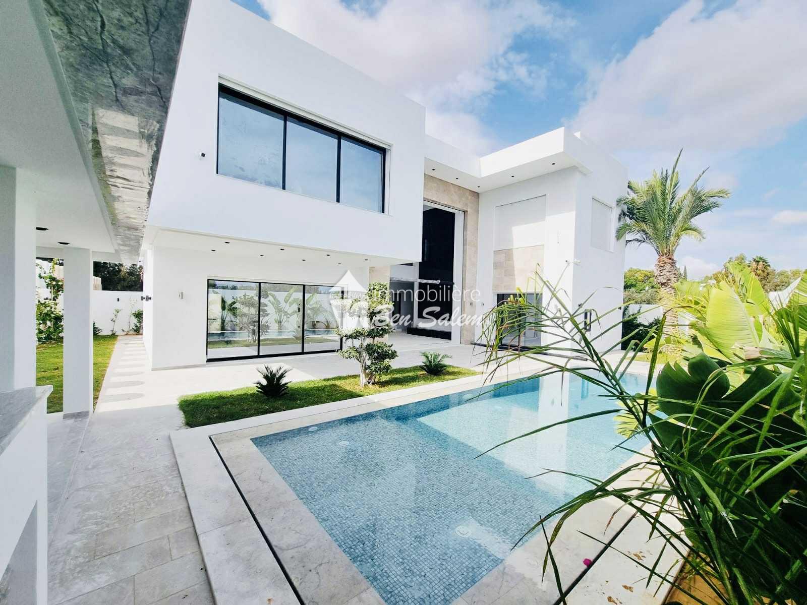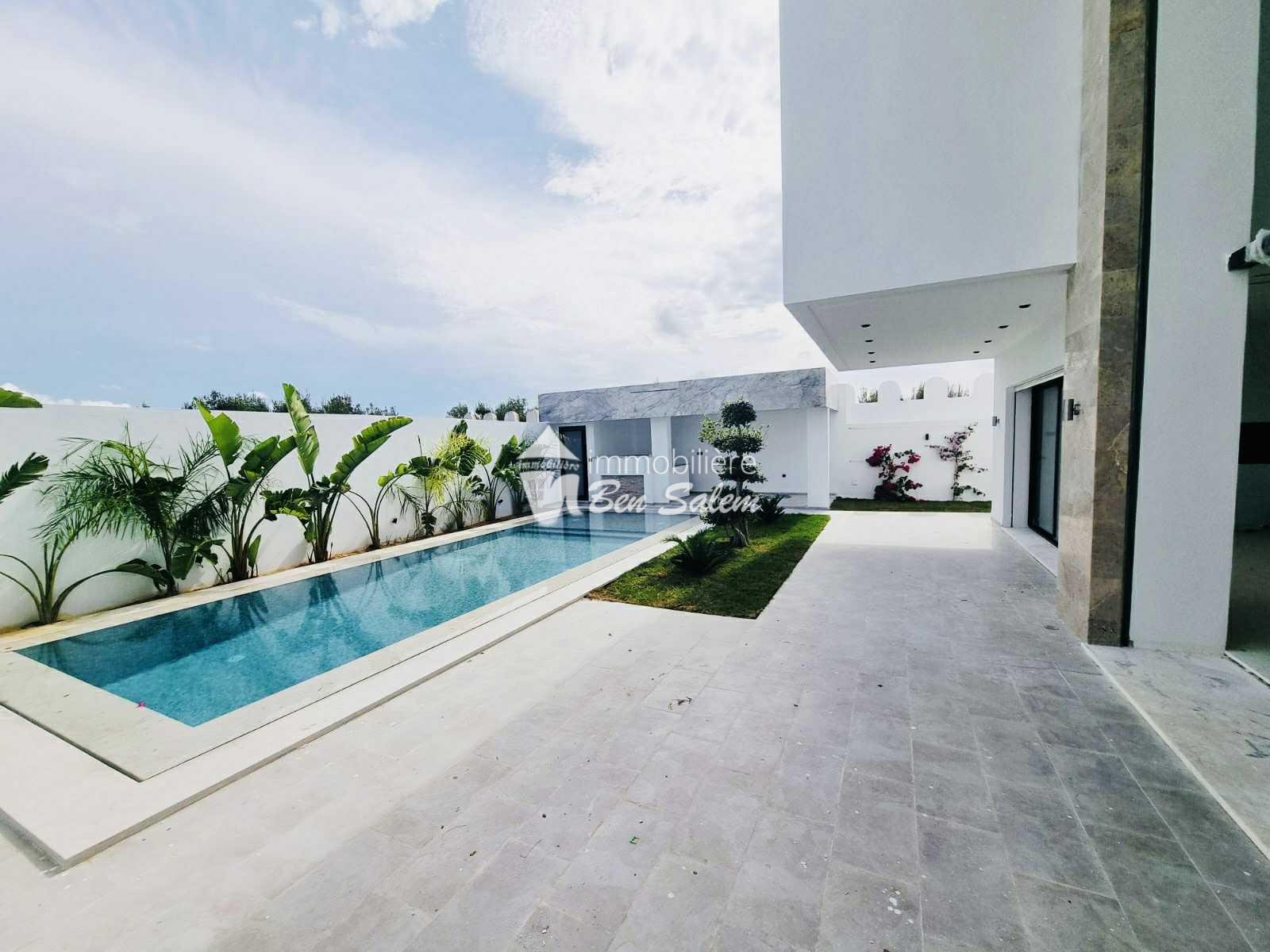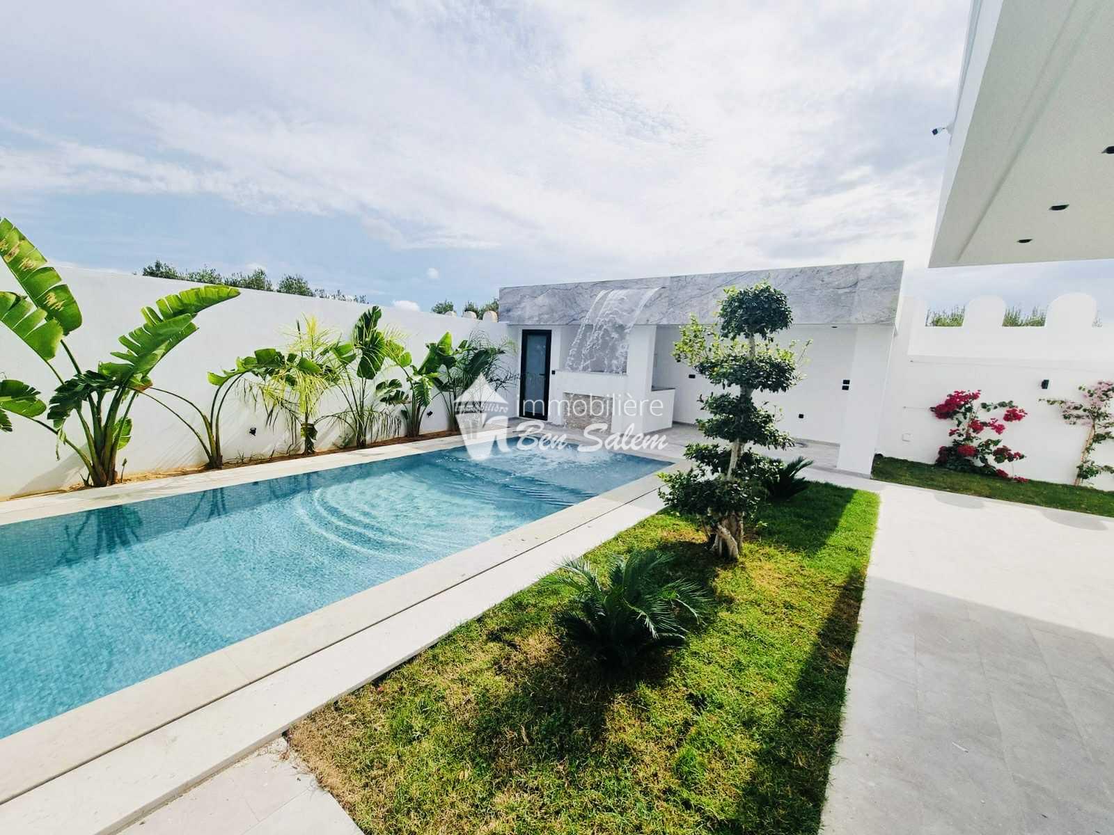A vendre, une villa luxe et moderne de haut standing avec piscine et jardin gazonné, située à Hammamet sud à 5 min de jinene hammamet dans un quartier résidentiel