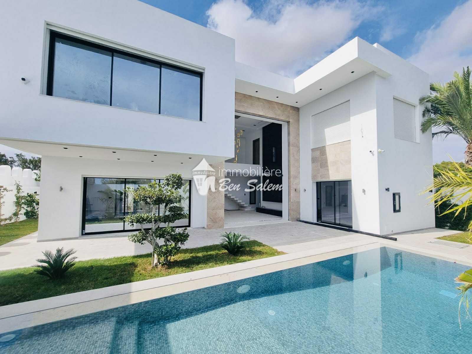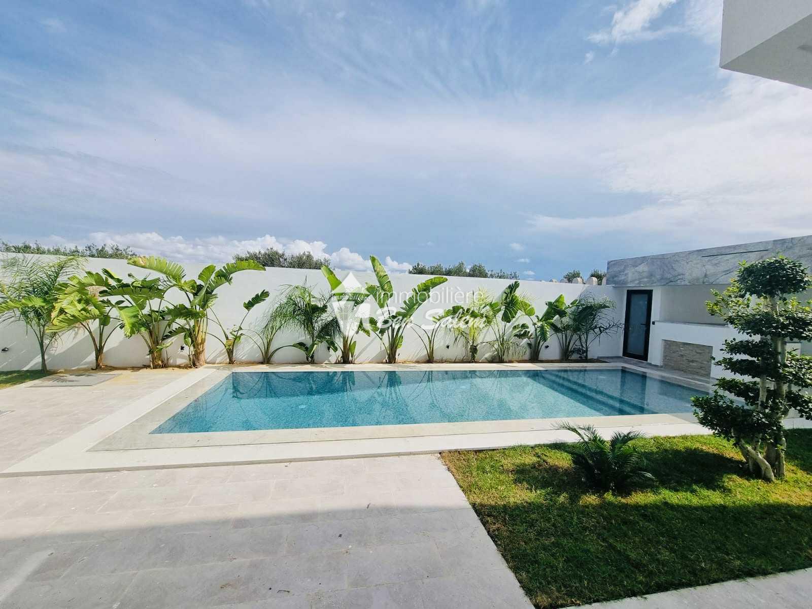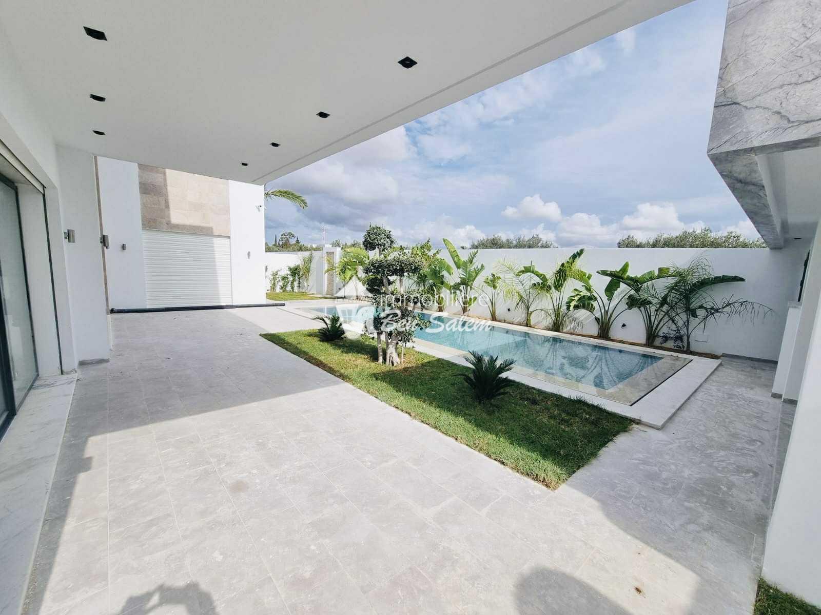 A vendre, une villa luxe et moderne de haut standing avec piscine et jardin gazonné, située à Hammamet sud à 5 min de jinene hammamet dans un quartier résidentiel