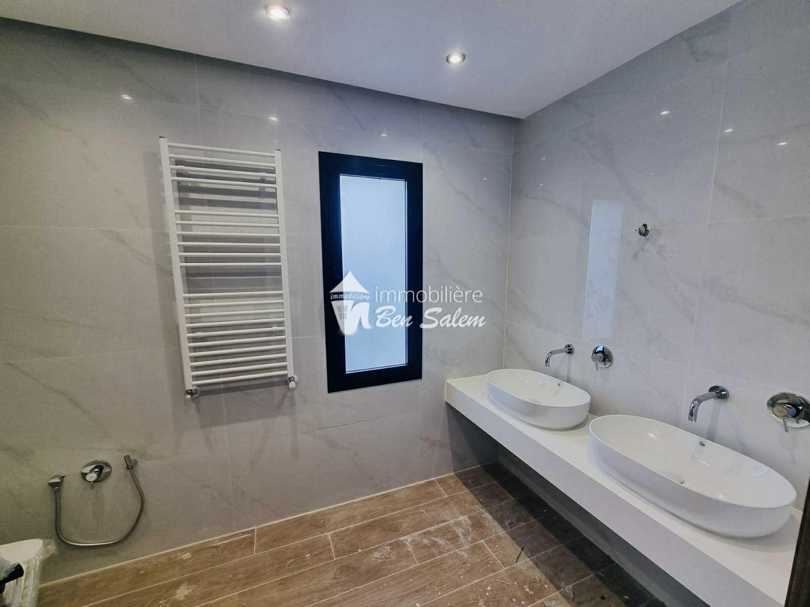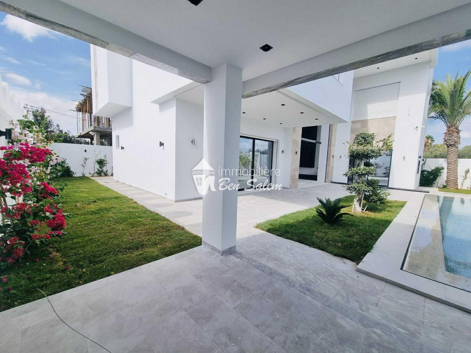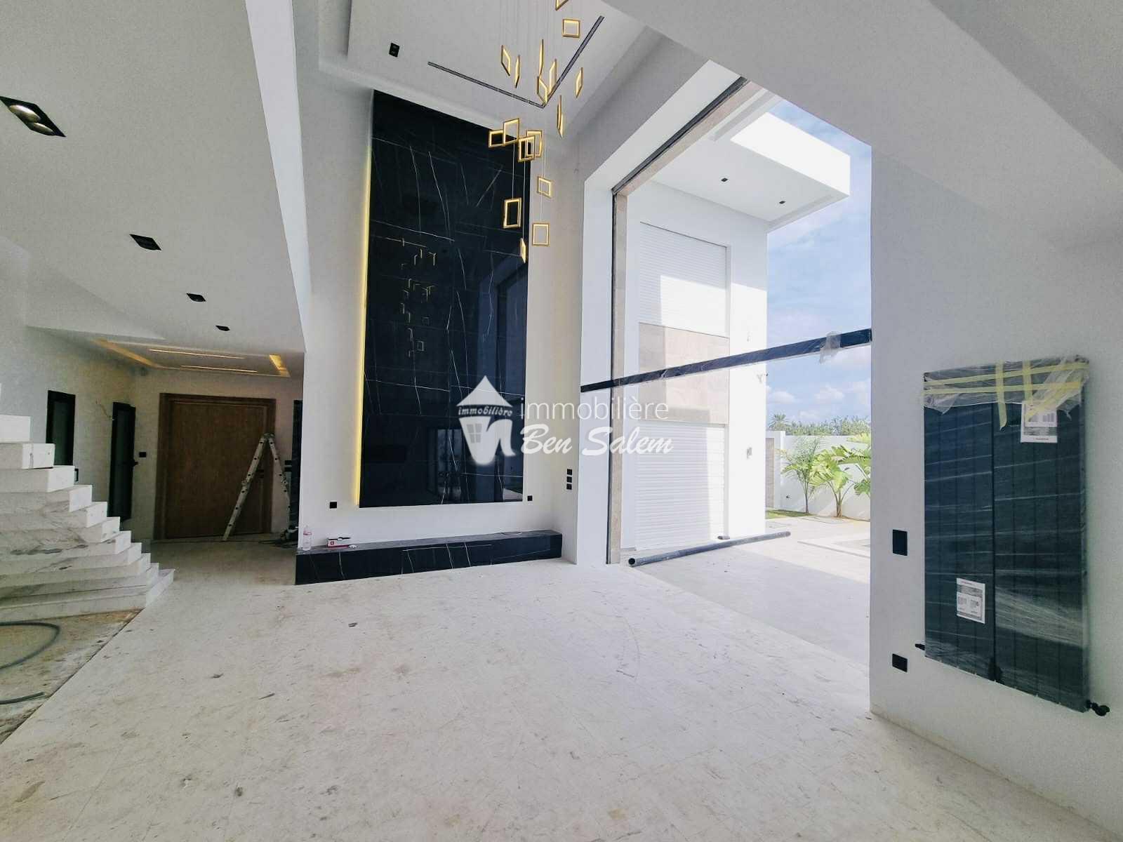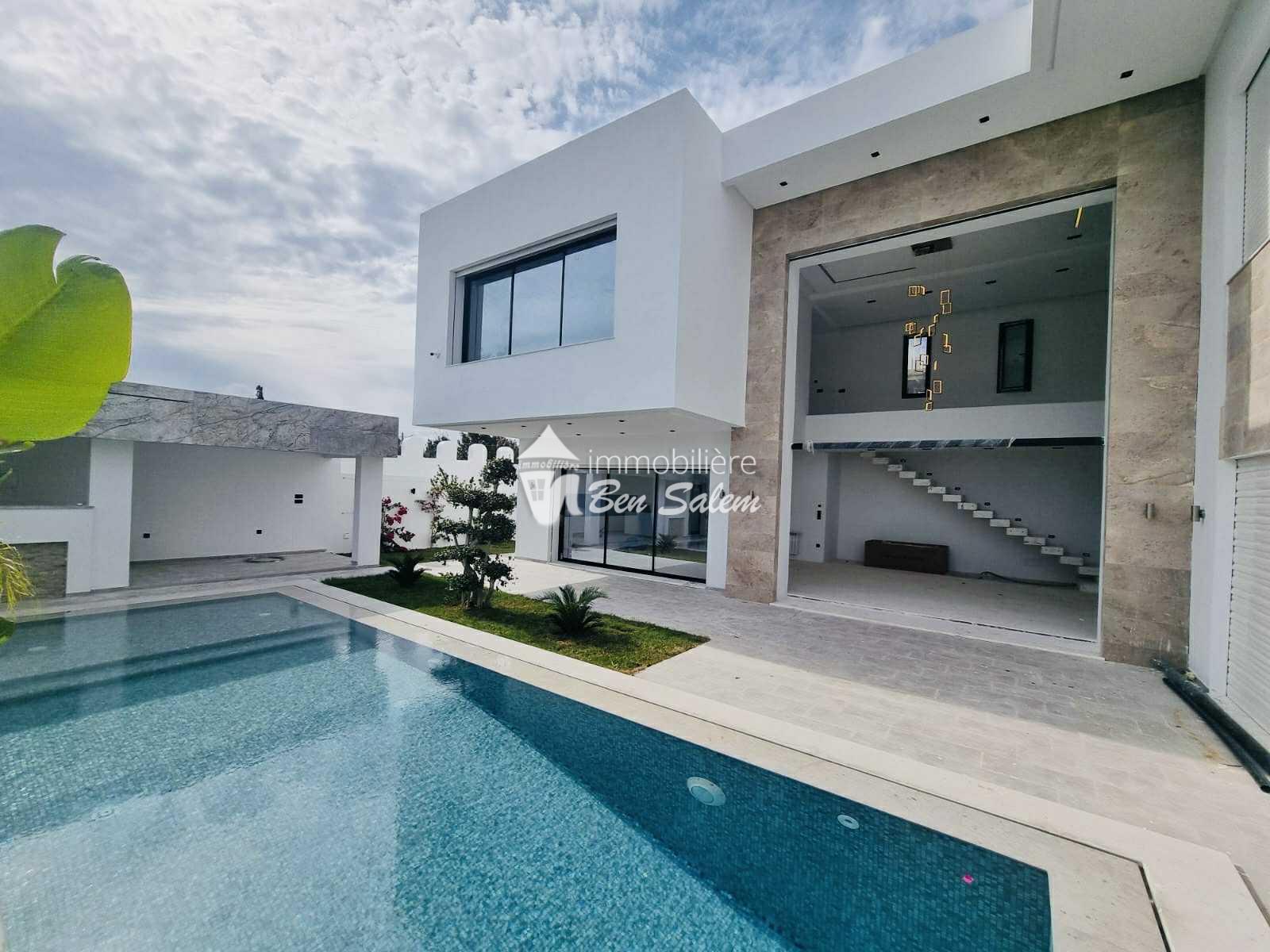 A vendre, une villa luxe et moderne de haut standing avec piscine et jardin gazonné, située à Hammamet sud à 5 min de jinene hammamet dans un quartier résidentiel