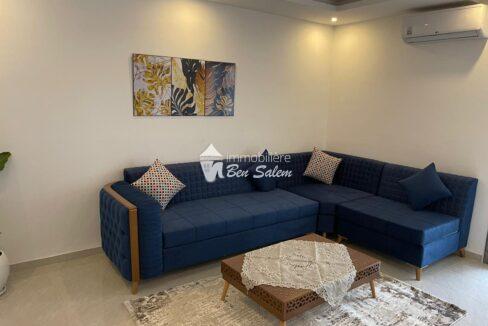 A louer à l’année, un appartement meublé, situé au 2 ème étage, dans une résidence gardée et sécurisée à Hammamet…